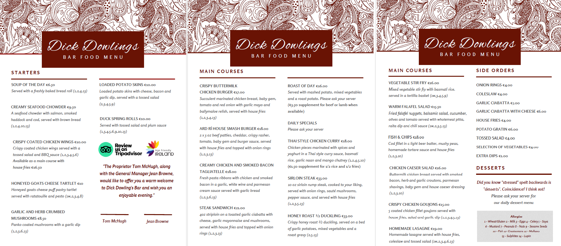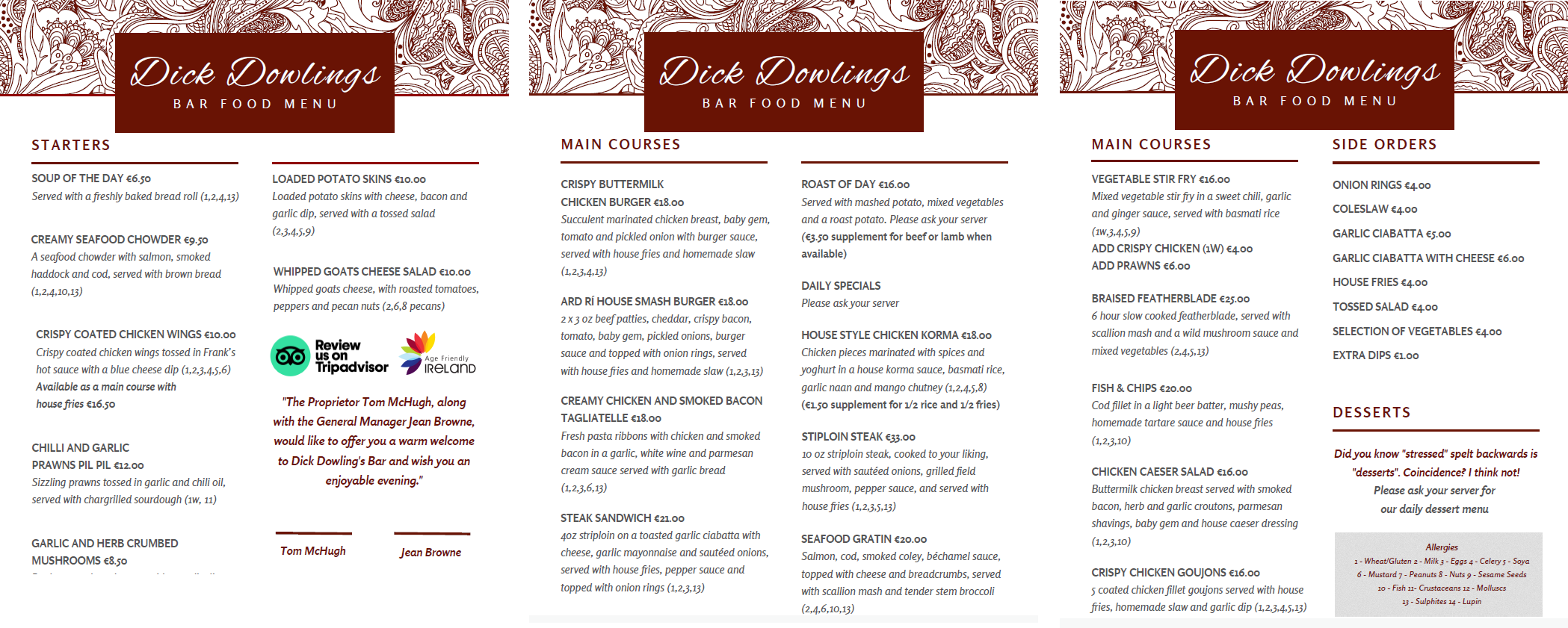 Click here to View our Bar Food Menu